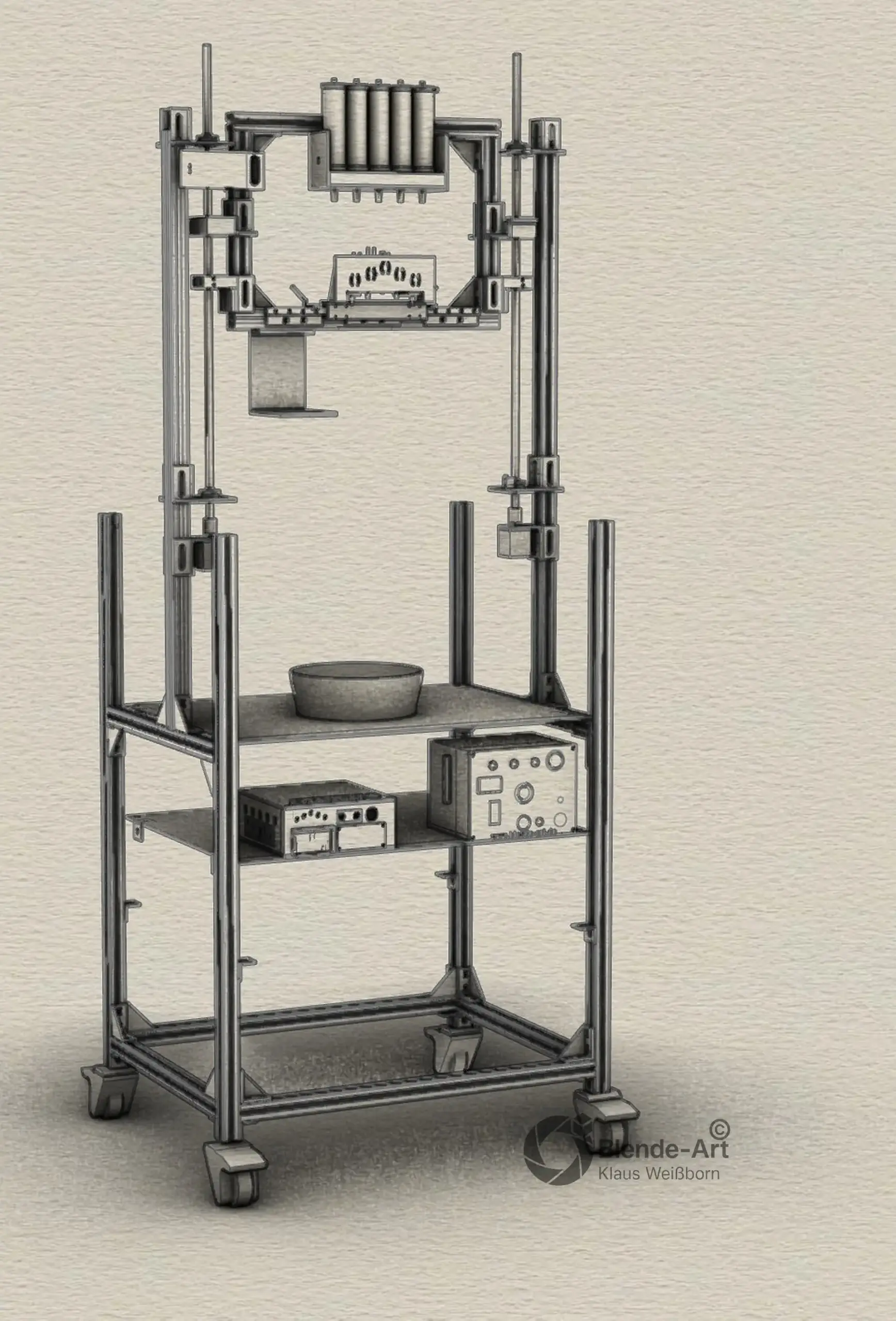 - einem stabilen Grundrahmen – 30er Alu-Profile auf Rollen mit Bremsen. Möglichst flexibler Standort