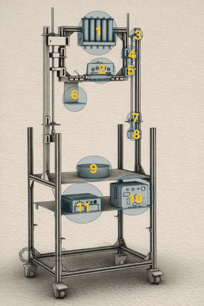 Jede Zahl markiert ein bestimmtes Bauteil oder Modul.